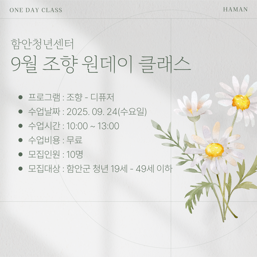 2025. 09. 24(수) "디퓨저 만들기" 원데이 클래스 모집