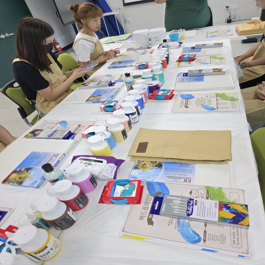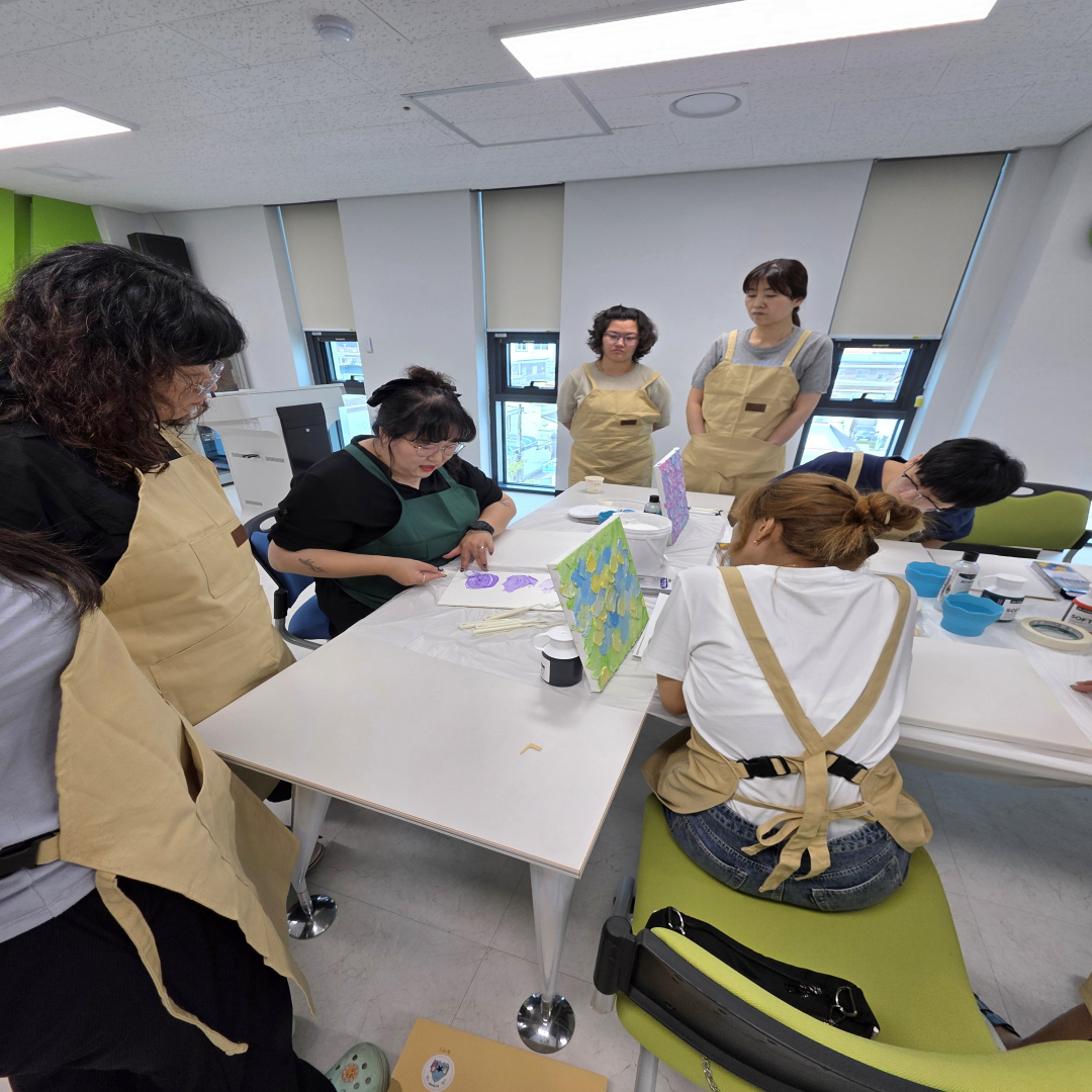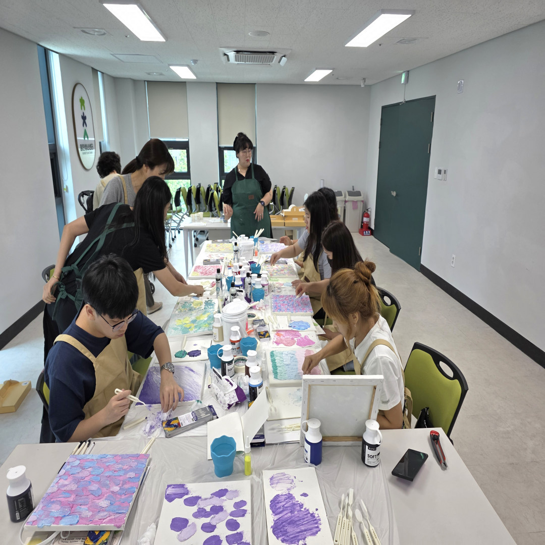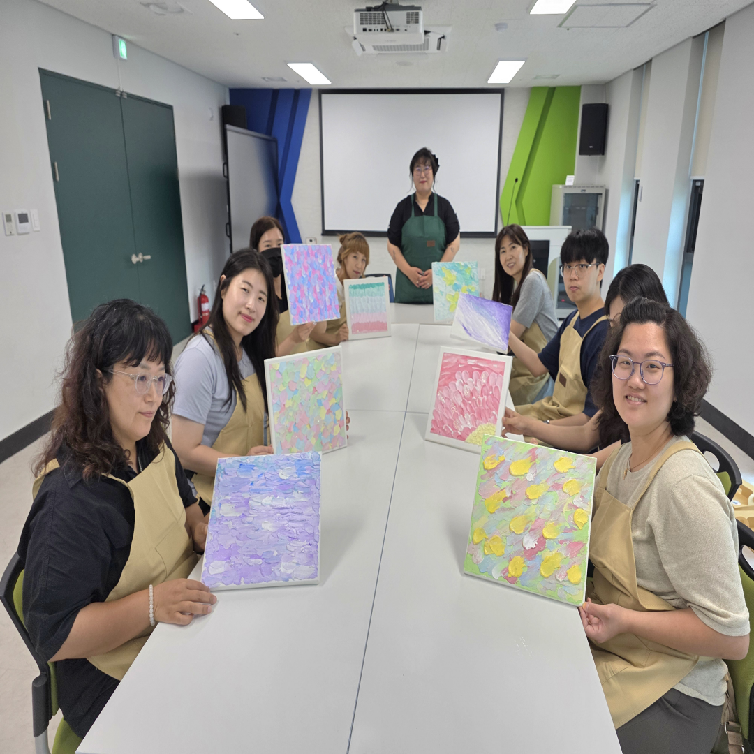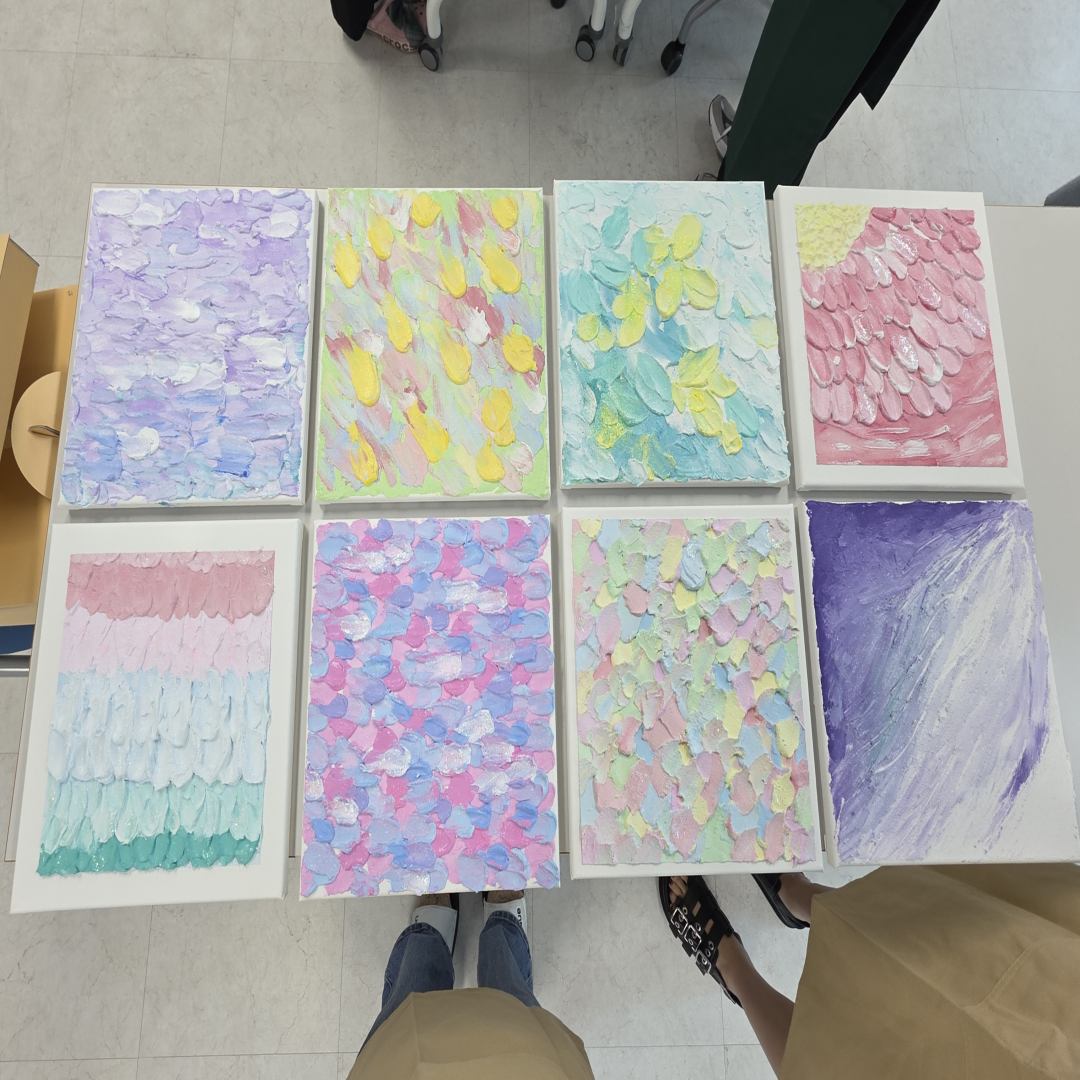 ![]() ![]() ![]() ![]() ![]() 6월 그림 클래스 (2025.06.19) 오늘은 여러분과 함께 그림수업을 진행해보았어요! 아크릴물감, 모델링페이스트, 반짝이가루를 이용한 백드롭페인팅을 해보았는데요.^^ 같은 재료인데도 모두 다른결의 작품들이 나왔답니다.^^ 열심히 집중하시는 모습도 멋있는 좋은 시간이었어요!! 시간내어 오신다고 고생하셨고, 다음에도 좋은 수업으로 만나요. |