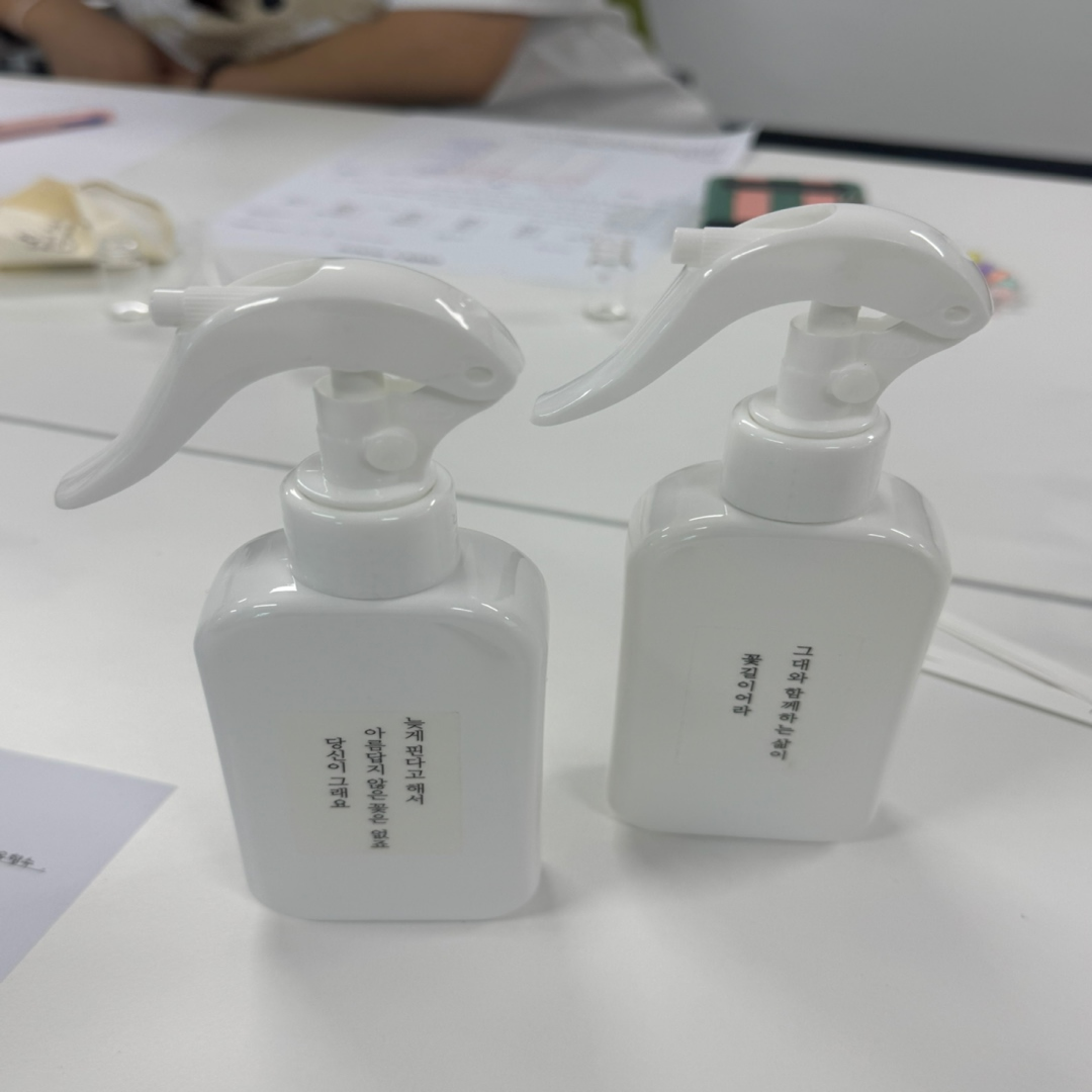 ![]() ![]() ![]() ![]() ![]() ![]() 8월 조향 클래스 (2025.08.21) 아침부터 풍기는 기분좋은 향. 발 빠르신 함안청년분들과 향기로운 섬유향수 만들기를 진행했답니다. 내 옷에도 촥~ 내 타올에도 촥~ 내 이불에도 촥촥~ 모두들 향기로움으로 여름을 보내보세요. ^^ |