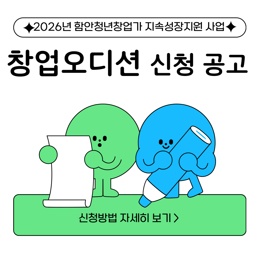 '2026년 함안청년창업가 지속성장지원사업' 참가자 모집