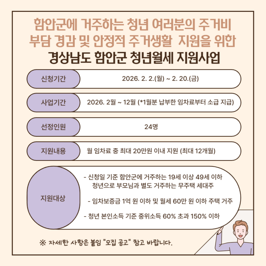 2026년 경상남도 함안군 청년월세 지원사업 안내