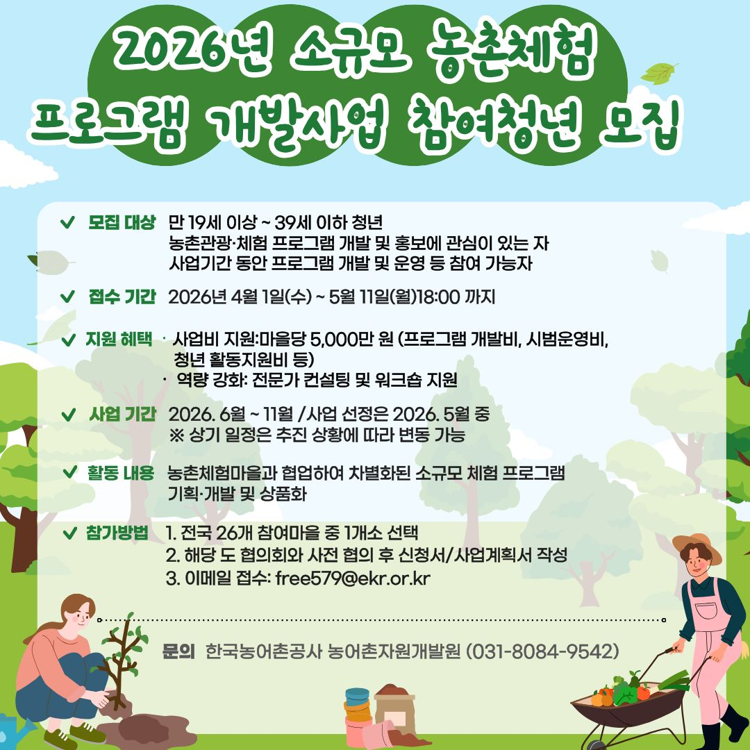 2026년도 소규모 농촌체험 프로그램 개발사업 참여청년 모집