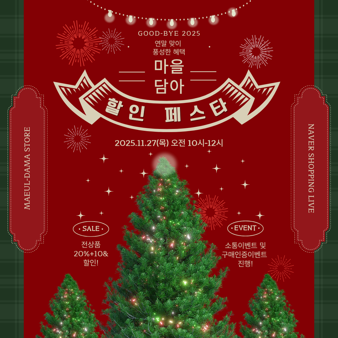 ![]() 경상남도 마을기업 공동브랜드 마을담아의 연말맞이 풍성한 혜택, 마을담아 할인 페스타 일정을 공유드립니다. 연말맞이 풍성한 혜택, 마을담아 할인 페스타 일시: 11. 27.(목) 10:00~11:59 장소: 네이버 스마트스토어 '마을담아' 쇼핑 Live 라이브커머스 예고 페이지: 링크 자세한 내용은 첨부한 카드뉴스 및 예고 페이지를 참고 부탁드립니다.